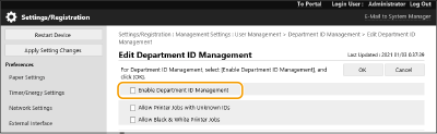 Valige [Enable Department ID Management].