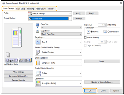 Määrake prindiseaded vastavalt vajadusele ja klõpsake [OK].