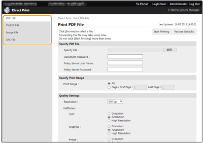, sisestage parool väljale [Document Password]. Poliitikaserveriga lingitud PDF-failide printimisel valige [Specify PDF File]