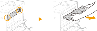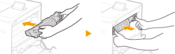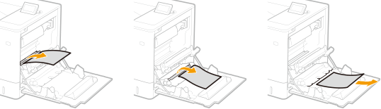 4 | Tõmmake paber õrnalt välja. Tõmmake paber välja, hoides seda võimalikult horisontaalselt, et kinnitamata tooner ära ei tuleks. ![]() |