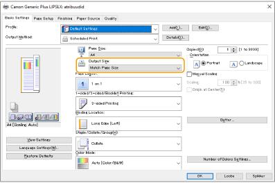Seadke printeridraiveri seade [Output Size] samaks paberiga, millele tahate printida.
