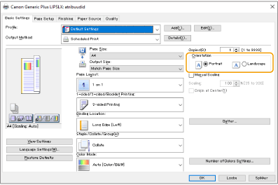 2 | Seadke draiveri kuval [Basic Settings] seade [Orientation] samaks, mis juhises 1. |
