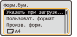 Если требуется часто менять загружаемую бумагу, выберите <Произв. форм.>; это уменьшит количество шагов, которые необходимо выполнять каждый раз для изменения параметра. Можно также настроить отображение сообщения об ошибке, если настройка в драйвере принтера будет значительно отличаться от формата загруженной бумаги.