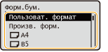 Если требуется часто менять загружаемую бумагу, выберите <Произв. форм.>; это уменьшит количество шагов, которые необходимо выполнять каждый раз для изменения параметра. Можно также настроить отображение сообщения об ошибке, если настройка в драйвере принтера будет значительно отличаться от формата загруженной бумаги.