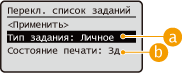 Выберите <Тип задания> и <Состояние печати> на экране <Перекл. список заданий>.