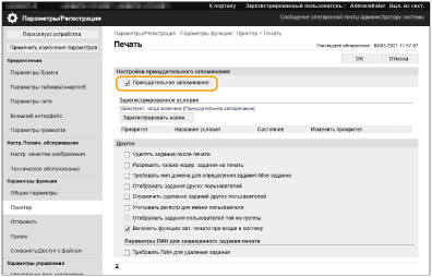 [Включить функцию авт. печати при входе в систему] нельзя выбрать, если выбрано [Разрешить только кодир. задания на печать].