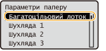 Можна зареєструвати параметри паперу за замовчуванням для багатоцільового лотка. Реєстрація параметрів за замовчуванням може заощадити зусилля, необхідні для зазначення параметрів щоразу, коли в багатоцільовий лоток завантажується той самий папір.