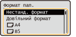 Якщо вам часто потрібно міняти папір для завантаження, установіть значення <Довіль.>; це зменшить кількість кроків, які потрібно щоразу виконувати для зміни параметра. Проте майте на увазі, що цей параметр дає змогу виконувати друк на апараті, навіть якщо є невідповідність між параметром типу паперу в драйвері принтера й типом паперу, який фактично завантажено в апарат.
