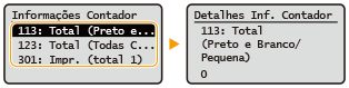 Pode verificar totais separados para o número de páginas utilizadas em impressões a cores e impressões a preto e branco. O número de impressões inclui as impressões da impressão a partir de dispositivo de memória e da lista, bem como as impressões de dados a partir de computadores.