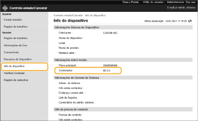 ![]() | É periodicamente lançado novo firmware para adicionar novas funções ou resolver problemas com as funções existentes. Se estiver disponível novo firmware, siga o procedimento abaixo para atualizar a máquina. É necessário ter privilégios de administrador para atualizar o firmware. |