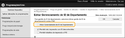 Selecione [Ativar Gerenciamento de ID de Departamento].
