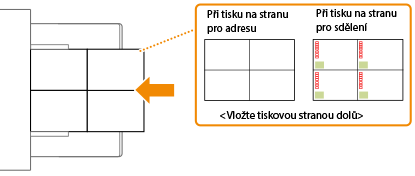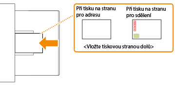 Tato část popisuje, jak vkládat pohlednice ve správné orientaci, a také postupy, které je třeba před jejich vložením provést. Popis obecného postupu pro vkládání pohlednic do víceúčelové přihrádky naleznete v části Základní způsob vkládání papíru. |