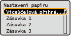 Můžete uložit výchozí nastavení papíru pro víceúčelovou přihrádku. Po uložení výchozího nastavení již při vložení tohoto papíru do víceúčelové přihrádky není nutné znovu zadávat nastavení papíru.