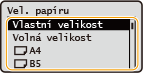 Pokud potřebujete vkládaný papír často měnit, vyberte možnost <Volná velikost>; zjednodušíte tak postup, který se provádí při každé změně nastavení. Když je velikost papíru nastavená v ovladači tiskárny výrazně odlišná od velikosti skutečně vkládaného papíru, můžete také nastavit, aby se zobrazilo chybové hlášení.