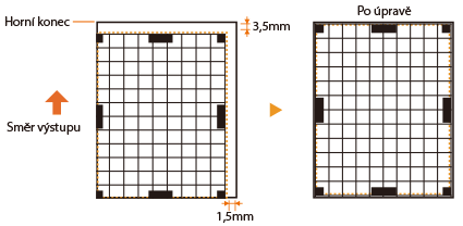 Můžete vytisknout ukázkový výtisk a ověřit směr a vzdálenost úpravy.