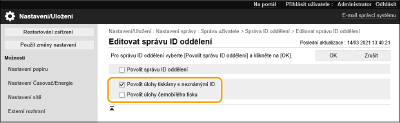 Pomocí správy ID oddělení můžete spravovat operace tisku prováděné prostřednictvím počítače. Tuto funkci používejte, když chcete zvýšit úroveň zabezpečení nebo sledovat počet vytištěných stran.
