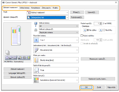 Podle potřeby zadejte nastavení tisku a klikněte na [OK].