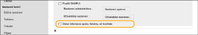 Zadejte nastavení Získávání informací o správě tiskárny.