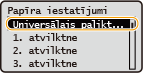 Daudzfunkciju papīrturim varat reģistrēt noklusējuma papīra iestatījumus. Reģistrējot noklusējuma iestatījumus, ikreiz, kad universālajā paliktnī ievietosit tāda paša formāta papīru, iestatījumi nebūs jānorāda atkārtoti.