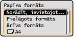 Ja jums ir bieži jāmaina ievietojamais papīrs, izmantojiet opciju <Brīvs formāts> — tādējādi katrā iekārtas lietošanas reizē varēsit mainīt iestatījumu, veicot mazāku skaitu darbību. Ja iestatījums printera draiverī ievērojami atšķiras no ievietotā papīra formāta, iekārtā var arī tikt parādīts kļūdas ziņojums.