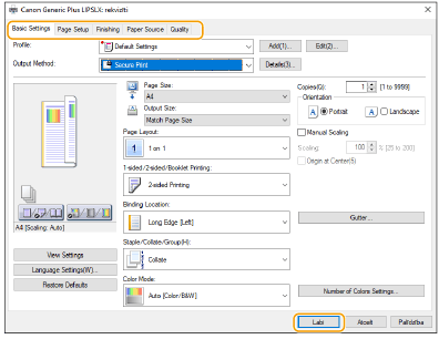 Sadaļā [Output Method] izvēlieties [Secured Print].