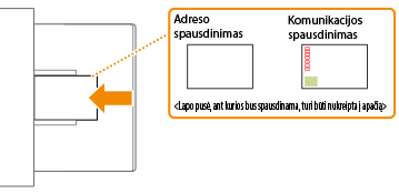 Kaip pavaizduota toliau pateiktuose vaizduose, atviruką dėkite spausdinama puse į apačią.