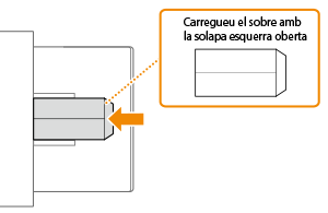 En aquesta secció es descriu la manera com es carreguen els sobres amb l'orientació correcta, a més dels procediments que cal seguir abans de carregar sobres. Per obtenir una descripció del procediment general per carregar sobres a la safata multiús, vegeu Mètode de càrrega de paper bàsic. |