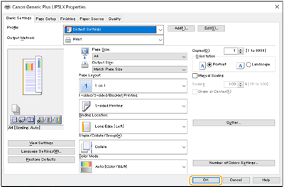 در صورت نیاز تنظیمات چاپ را مشخص کنید و روی [OK] کلیک کنید.