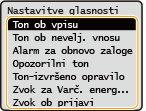 <Ton ob nevelj. vnosu> | Zvok, predvajan ob izvedbi neveljavnega postopka s tipko ali ob vnosu vrednosti zunaj veljavnega obsega nastavitve |