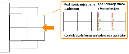 Kao što je prikazano na slikama u nastavku, umetnite dopisnicu s ispisanom stranom okrenutom prema dolje.