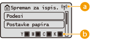 Prikazuju se razine tonera u spremnicima tonera. Ne prikazuju se kad upravljate zaslonom <Početni prikaz>.