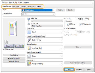 Odaberite upravljački program pisača za ovaj uređaj pa kliknite [Preferences] ili [Properties].
