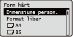 Dacă trebuie să schimbaţi frecvent hârtia care trebuie încărcată, setaţi la <Format liber>; această opţiune va reduce numărul de paşi necesari pentru schimbarea de fiecare dată a setării. De asemenea, puteţi afişa un mesaj de eroare când setarea din driverul de imprimantă este foarte diferită de formatul de hârtie încărcată.
