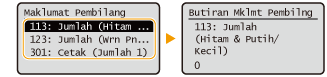 Tekan <Perkhidmatan Pengawasan> <Ujian Komunikasi> untuk menyemak komunikasi dengan pelayan pemantauan kawalan jauh. Apabila fungsi ini dilaksanakan, maklumat mengenai mesin dihantar secara berkala kepada pelayan pemantauan kawalan jauh. Ini perlu untuk membolehkan komunikasi antara mesin dan pelayan yang menyediakan perkhidmatan untuk menggunakan fungsi ini.<Perkhidmatan Pengawasan> mungkin tidak dipaparkan, bergantung pada negara atau rantau anda. Anda boleh mencetak senarai yang menunjukkan bilangan halaman yang digunakan untuk mencetak. Laporan Output <Laporan Pembilang>Untuk maklumat mengenai syarat pengiraan, hubungi wakil penjual atau wakil servis anda. |