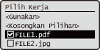 <Kerja utk Dicetak>/<Krja yg tlh Dictak>Apabila memilih dokumen tidak bercetak, sahkan bahawa <Kerja utk Dicetak> dipilih.