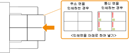 아래 이미지와 같이 인쇄면을 아래로 하여 엽서를 넣습니다.
