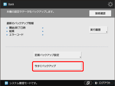 バックアップが即時に開始されます。必要に応じて実行してください。