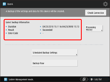 Checking the Backup Results Using the Touch Panel Display of the Device