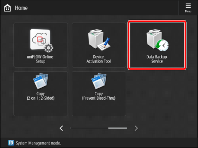 Press [Data Backup Service] on the <Home> screen.
