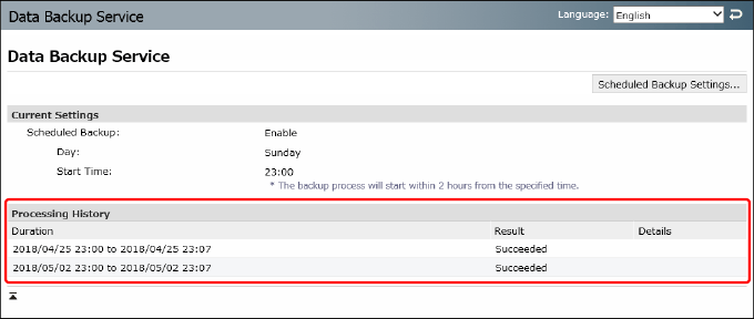 If you press [Processing History], you can check up to 20 past backup results.