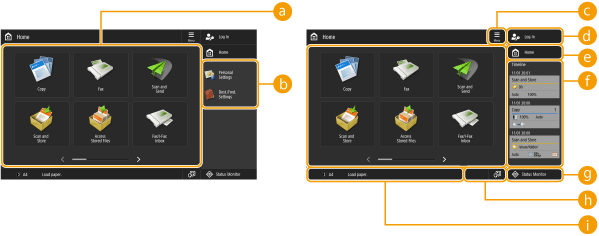 These buttons enable you to open the basic function screens, such as "Copy" and "Scan and Send".