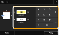 Select <X> or <Y>, and enter the length of each side using the numeric keys.