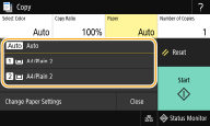 ![]() | Automatically selects the paper depending on the original size loaded. |