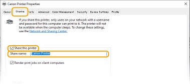 To perform the following procedure, log in to your computer with an administrator account. You may be unable to install drivers over the network depending on the operating system and the bit architecture (32-bit or 64-bit) of the print server and client computers. When implementing a print server in a domain environment, consult your Network Administrator. |