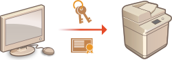 可以从证书颁发机构 (CA) 获取使用本机的密钥和证书以及 CA 证书。使用远程用户界面在本机上安装并注册获取的密钥和证书文件以及 CA 证书文件。请事先检查本机所需的密钥和证书以及 CA 证书条件。(
