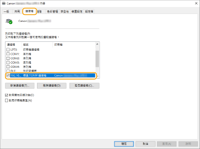 若使用網路連線且變更過本機的 IP 位址若所選連接埠的 [描述] 是 [Canon MFNP Port],且本機和電腦位於同一個子網路,則可保持連線。不需增加新的連接埠。若顯示 [標準 TCP/IP 連接埠],則需增加一個新的連接埠。 設定印表機連接埠 |