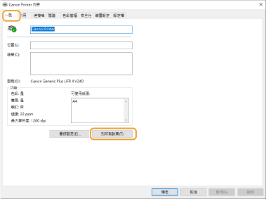按一下 [一般] 標籤中的 [列印測試頁]。