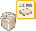![]() | 乙太網路是在區域網路 (LAN) 傳遞資料的標準。可以設定通訊模式和乙太網路類型。通常不需變更預設設定就能使用本機 (<乙太網路驅動程式設定>),但可以根據網路環境變更這些設定。 |