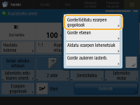 Ezarpen berdinak erabiltzen badituzu kopiatu, faxa eta eskaneatu funtzioetarako edo ezarpen zailak gorde nahi badituzu, ezarpenak erregistra ditzakezu gogoko ezarpen gisa, horiek modu eraginkorrean berreskuratzeko.