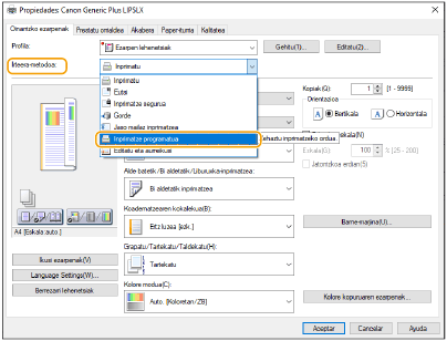 ![]() | Inprimatzen hasteko ordu bat ezar dezakezu; oso erabilgarria da, adibidez, gauean dokumentu ugari inprimatzeko. |